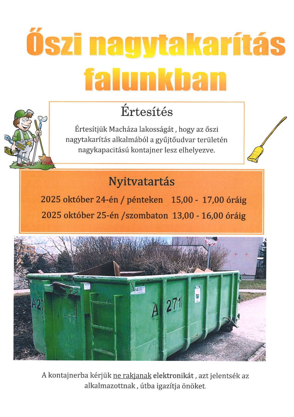 2024. szeptember 21-én - szombaton került megrendezésre második alkalommal községünkben a helyi parkban a „Falunap”, ahová szórakozni érkeztek a Macháza-i lakosok és a szomszédos falubeli érkező vendégek.